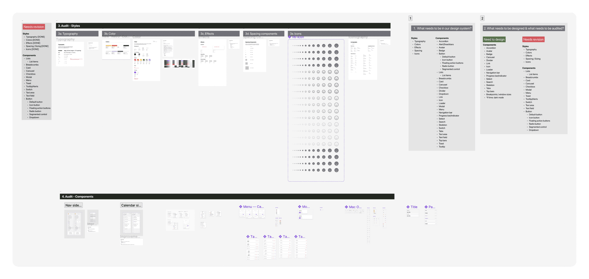 We went through a thorough audit process, analyzing our legacy design library which contained our (quite disheveled) set of product styles and components. We recorded what was missing, found opportunities for improvement, and prioritized which work was most feasible and pertinent within our timeline.