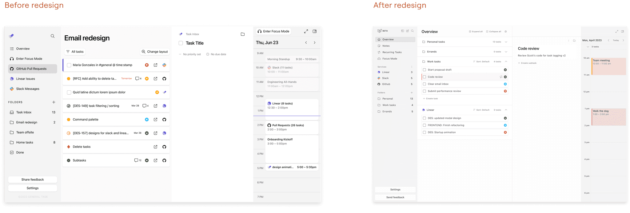 General Task's mission is to make knowledge workers more productive. I was the first full-time product designer alongside a small, but mighty cross-functional team of 6 developers, a product manager, and a product design intern.