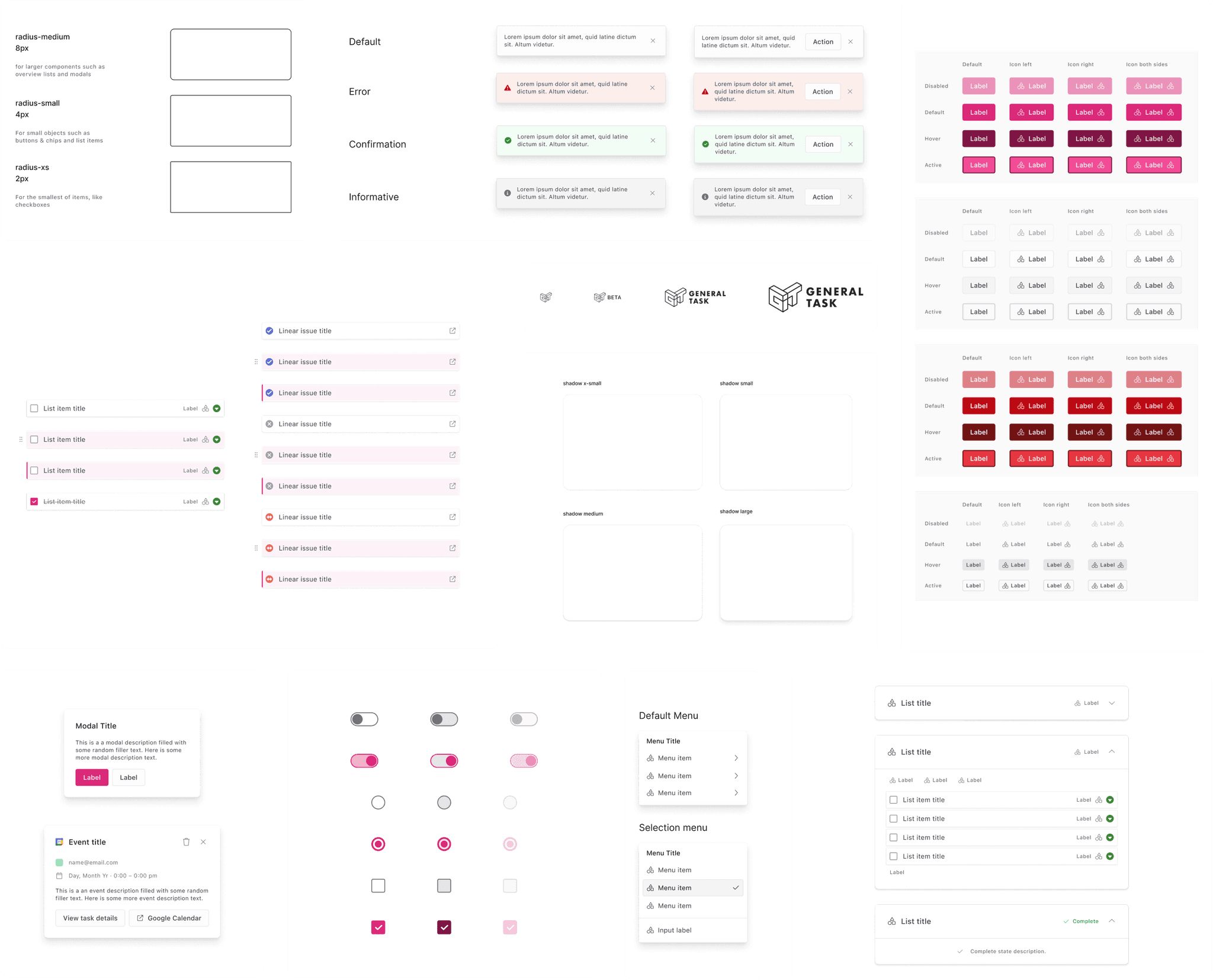 Design systems are never finished. Although my time with General Task was nearing an end, there were a lot of moving parts within our design system that could've used improvement. We had to ensure that there was routine maintenance of our system and alignment with the team to keep everything up-to-date.